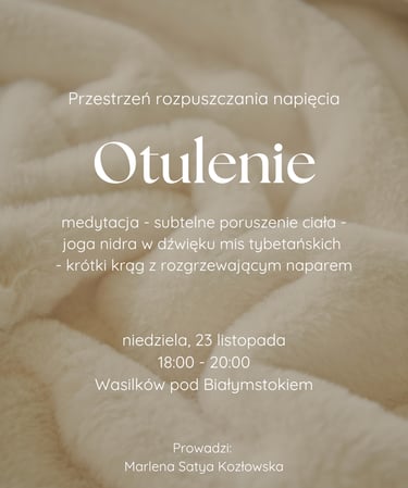 Otulenie to kameralne jesienne spotkania dla Kobiet w blasku świec, z subtelną muzyką i ciszą, z oddechem i uważnością na Siebie, swoje ciało i emocje w ciele. To przestrzeń rozpuszczania napięć.