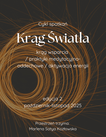 "Krąg Światła" - grupa rozwojowa, cykl spotkań w grupie zamkniętej. Podczas każdego ze spotkań odbywać się będzie krąg, praktyka oddechowo-medytacyjna podnosząca energię oraz grupowa sesja aktywacji energii. Cykl zawiera 3 spotkania odbywające się co 2 tygodnie.