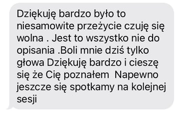 Spotkanie trwa ok. 120 min. Zaczynamy krótkim wprowadzeniem i omówieniem metody, następnie przechodzimy do sesji, która trwa ok. 70 min. W jej trakcie używam muzyki, instrumentów, dotyku, oddechu. Wszystko to, aby stworzyć bezpieczną przestrzeń, w której możesz poddać się działaniu energii i czerpać z niej to, czego potrzebujesz. Spotkanie kończymy kręgiem zamykającym, podczas którego każdy dzieli się tym, czym chce się podzielić. Krąg uziemia, pokazuje spektrum działania energii ale też daje Ci przestrzeń do swobodnej rozmowy o Twoim doświadczeniu.