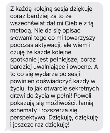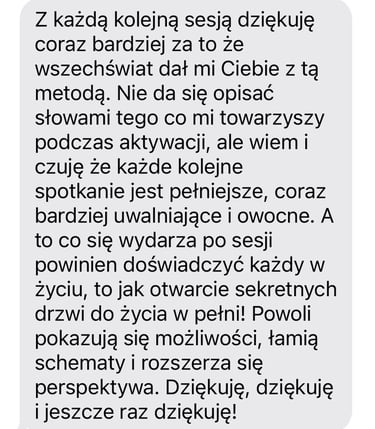 Aktywacja energii to metoda, która w bezpieczny sposób może pomóc Ci uporać się z blokadami emocjonalnymi, energetycznymi, poszerzy Twoją percepcję i świadomość. Jeżeli jesteś w procesie rozwoju i czujesz, że chcesz zrobić kolejny krok do Siebie, Aktywacja jest dla Ciebie.