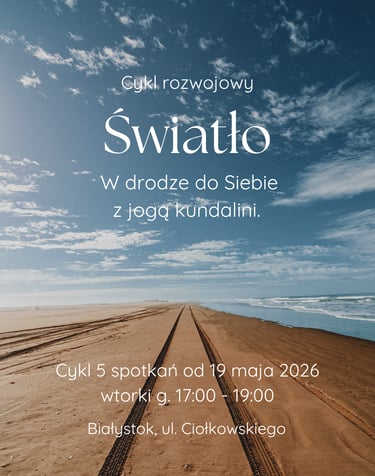 Zapraszam Cię do nowego cyklu rozwojowego „Światło. W drodze do Siebie z jogą kundalini”. To cykl 5 spotkań, które pomogą Ci podnieść energię i poczuć się lepiej - fizycznie, energetycznie, emocjonalnie.