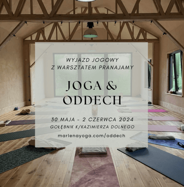 - Codziennie po śniadaniu i czasie wolnym spotkamy się na warsztacie oddechowym podczas którego damy uwagę procesowi, który nieustannie dzieje się w naszym ciele, choć w znacznej większości nieświadomie. Sprawdzimy, czy masz prawidłowy wzorzec oddechowy, czy oddychasz przeponą, a jeżeli nie, nauczymy się, jak pracować, aby skorygować ten nawyk. Dowiesz się, czym jest pranajama, jaki jest jej cel oraz poznasz wybrane techniki oddechowe, które możesz wdrożyć do swojej codziennej praktyki. Warsztat opiera się w 90% na praktyce i w 10% na teorii.