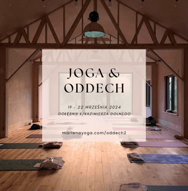 Joga & oddech to 4-dniowe spotkanie poświęcone pracy z ciałem oraz energią poprzez oddech. Jeżeli szukasz czasu dla siebie, wyciszenia gonitwy myśli, czułego ruchu, kontaktu z naturą, praktyki z szacunkiem dla swojego ciała i umysłu, to wydarzenie dla Ciebie.