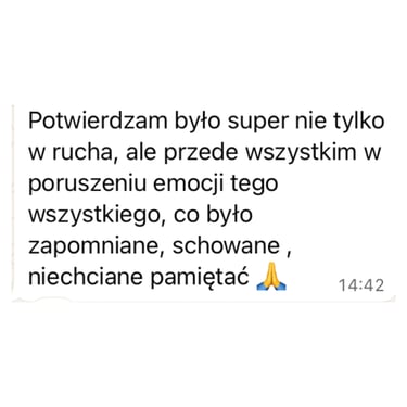 Spędziłam setki godzin pracując na sali z grupami - w ruchu, oddechu, poszerzaniu świadomości. Tworzę bezpieczną przestrzeń, w której możesz rozgościć się i skupić tylko na Sobie. Jeżeli czujesz się tu dobrze, zapraszam Cię do wspólnej podróży.