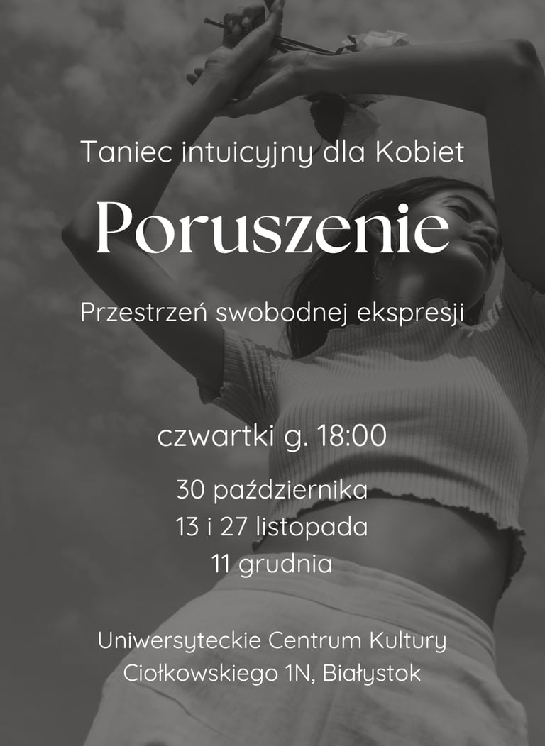 Rozpoczynamy nowy cykl spotkań w tańcu. Wspólnie zanurzymy się w rytmie muzyki, wrażeniach z ciała, emocjach. W tańcu - intuicyjnym, spontanicznym, a czasem ekstatycznym.